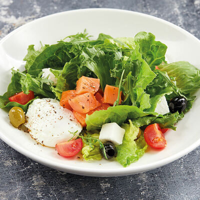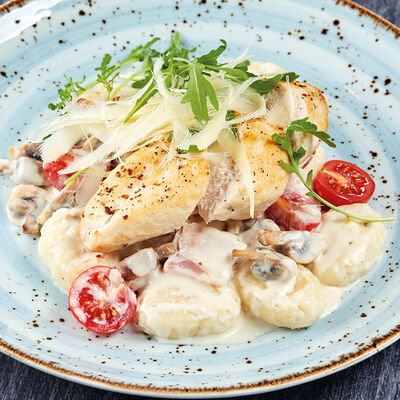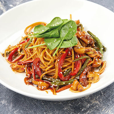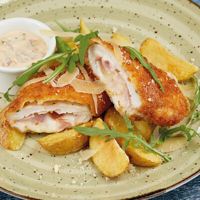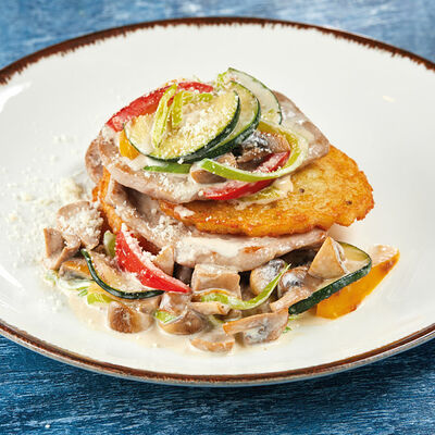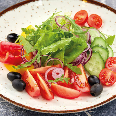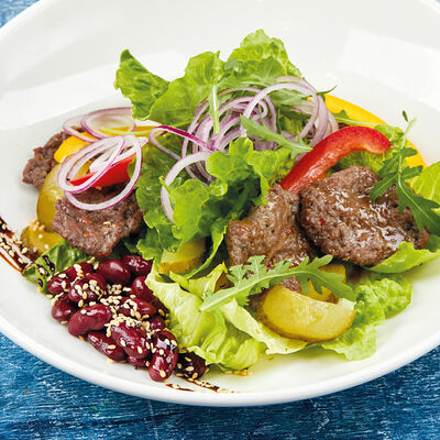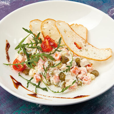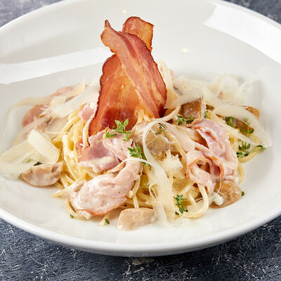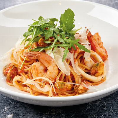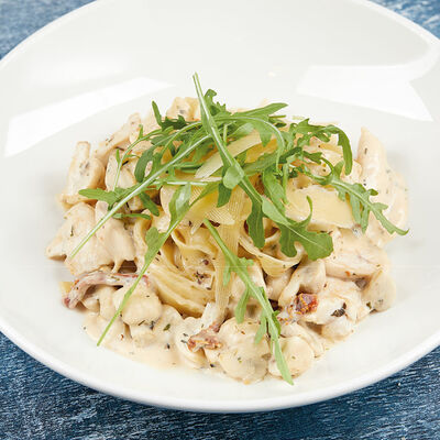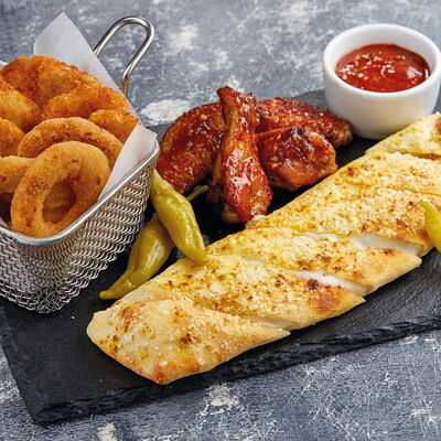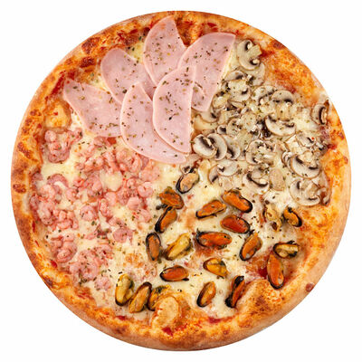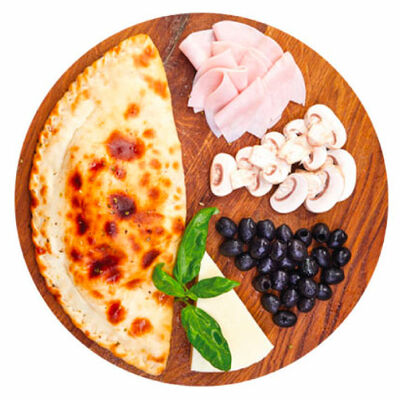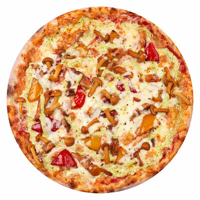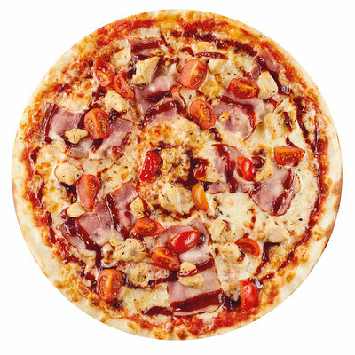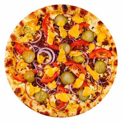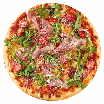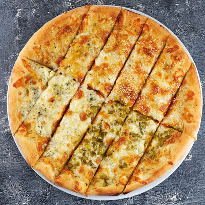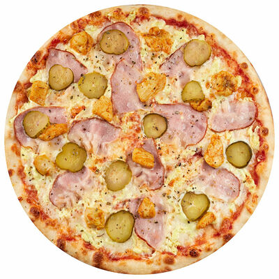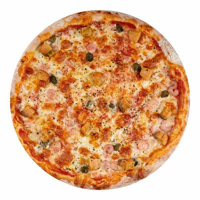 Соус из протёртых томатов, Моцарелла, салями, колбаса Пепперони, имбирный соус, красный лук, Халапеньо, приправа к пицце, чесночное масло