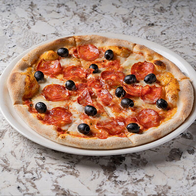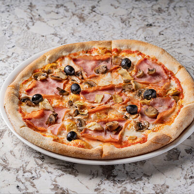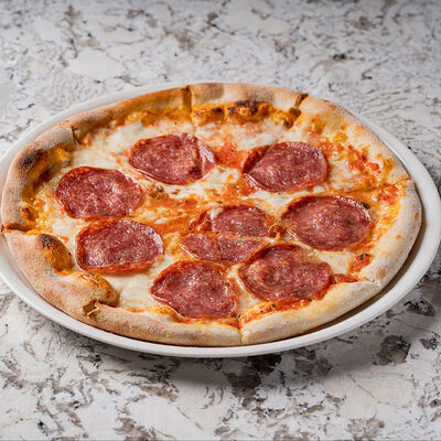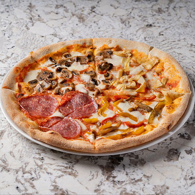 Томатный соус, салями милано, овощи, шампиньоны, артишоки, сыр моцарелла