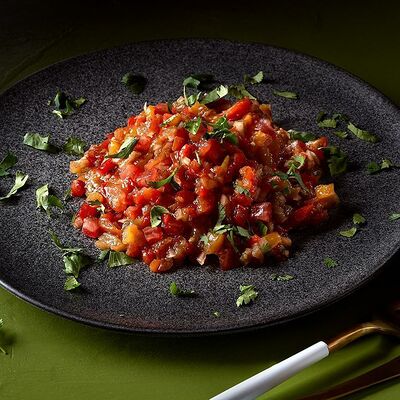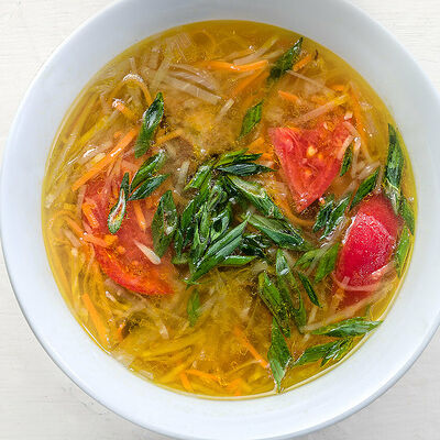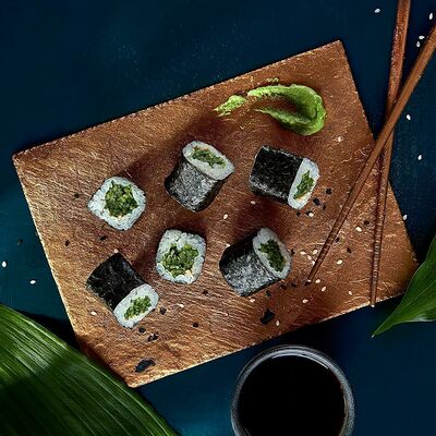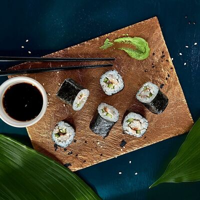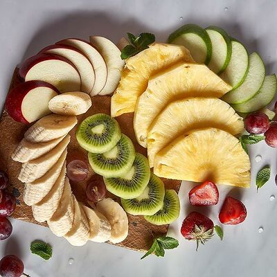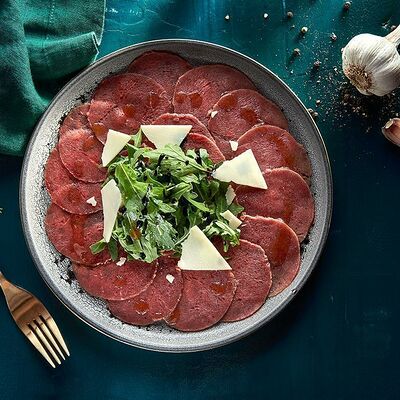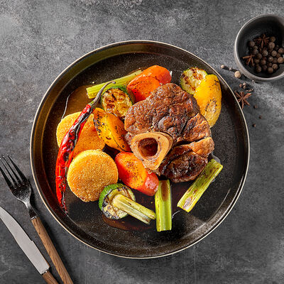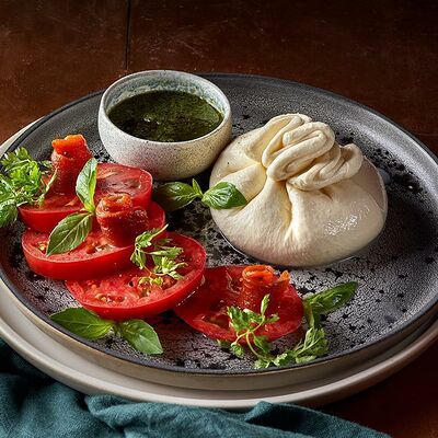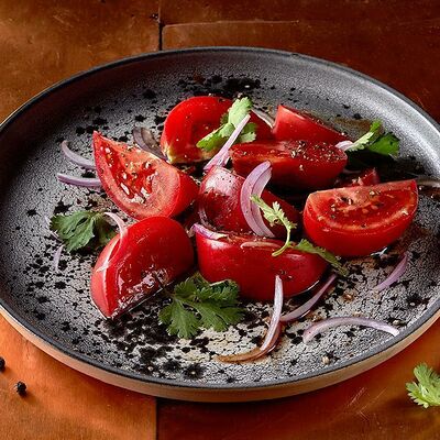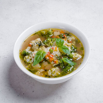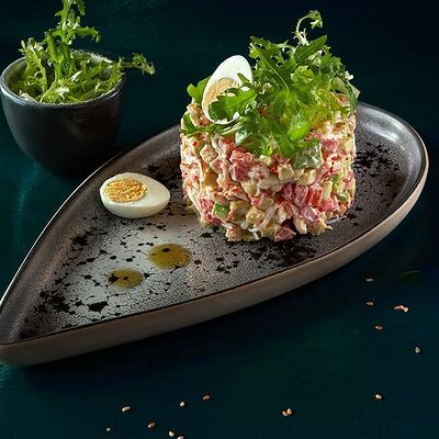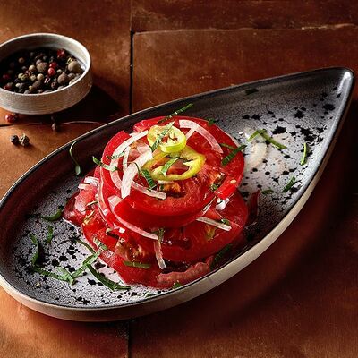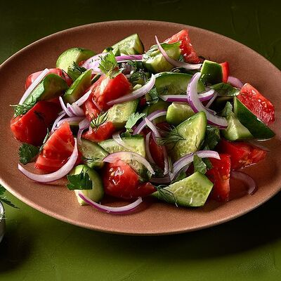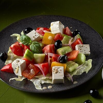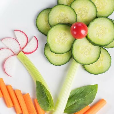 Полезная овощная нарезка из хрустящих огурцов, сельдерея, черри, редиса и свежих долек моркови. Украшается зеленым базиликом