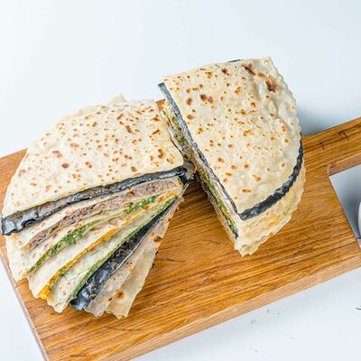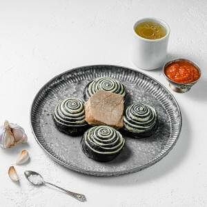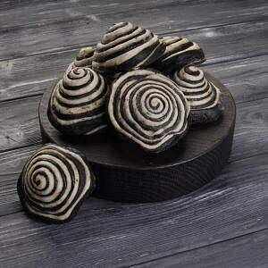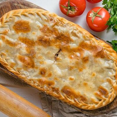 Фирменный чуду с нежной начинкой из четырех сыров: Дорблю, моцарелла, брынза, сулугуни. В тесто добавляются чернила каракатицы