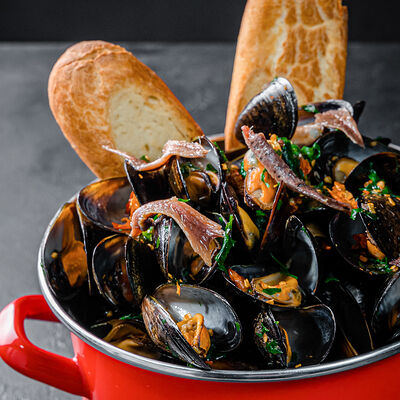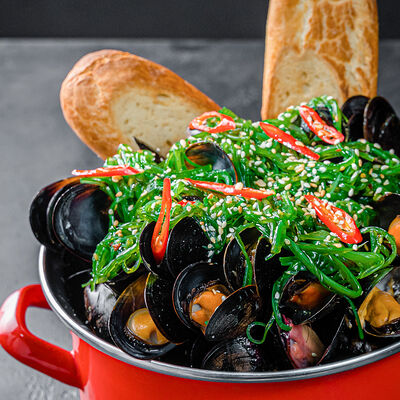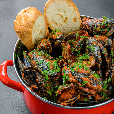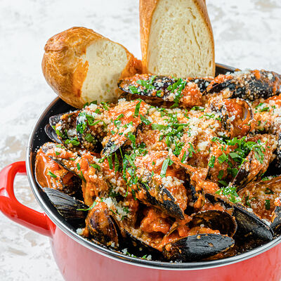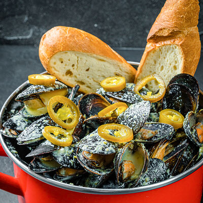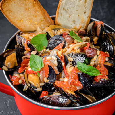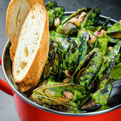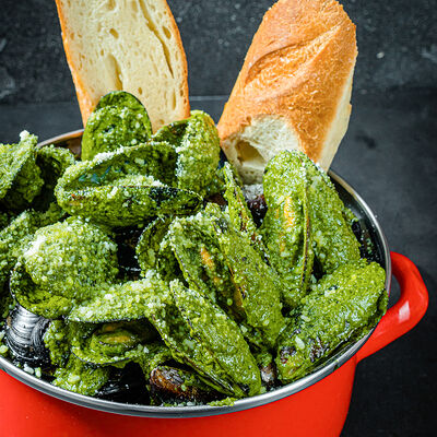Мидии с соусом песто доставка