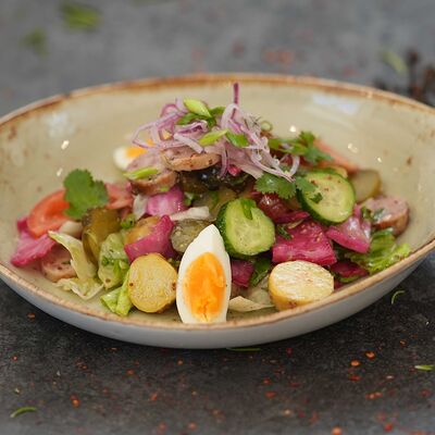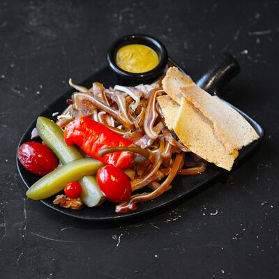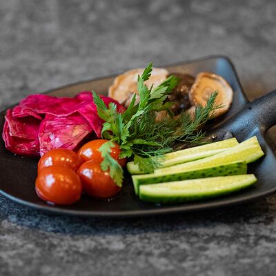 Гурийская капуста, огурцы малосольные, помидоры консервированные, грибы грузди в маринаде, зелень петрушки