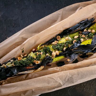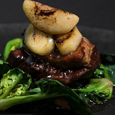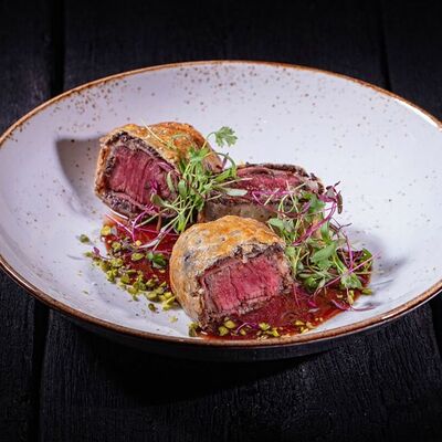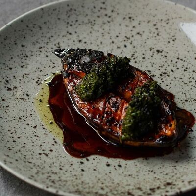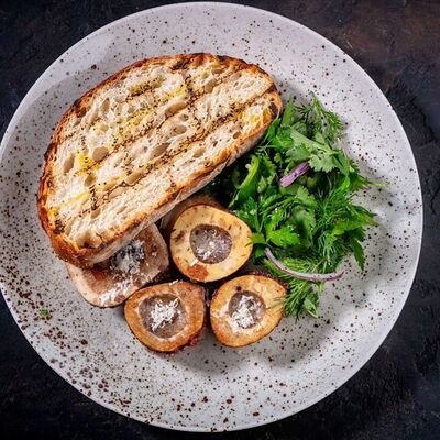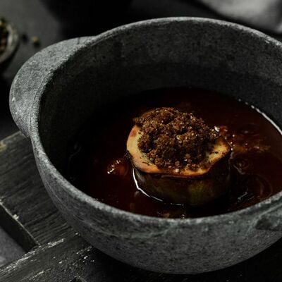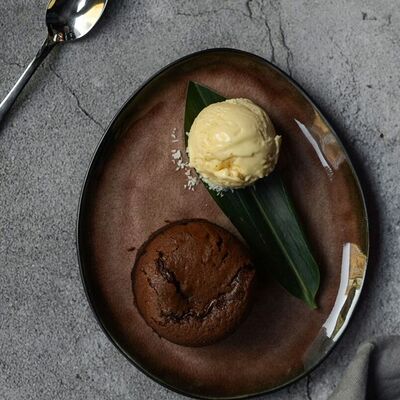 Шоколадный десерт с жидкой начинкой внутри и хрустящей корочкой снаружи. Подаётся с домашним кокосовым мороженым