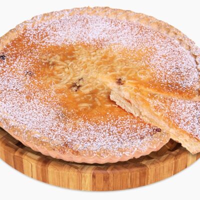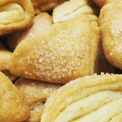 Из слоеного теста (мука высшего сорта, яйцо, масло сливочное, водка, соль), осетинский сыр