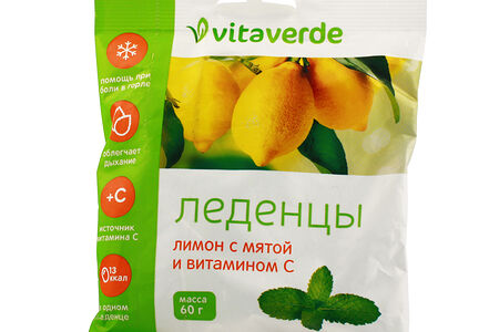 Vitaverde Леденцы лимон с мятой и витамином С 60 г доставка