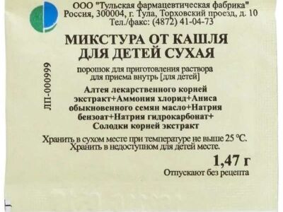 Микстура сухая от кашля детская 1,47г пакет №1(Тульская ФФ) доставка
