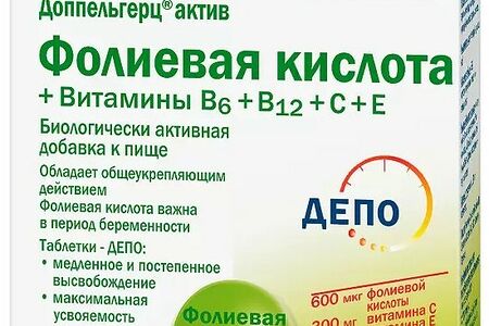 Доппельгерц актив фолиевая кислота + витамины В6 + В12 + С + Е 30 шт таблетки доставка