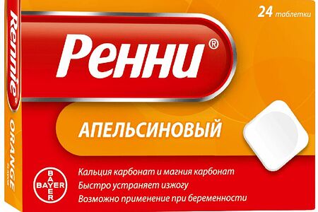 Ренни 24 шт таблетки апельсиновый доставка