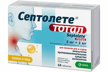 Септолете Тотал 16 шт таблетки для рассасывания лимон и мед доставка