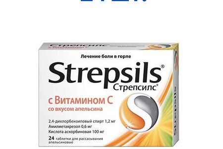 Стрепсилс 24 шт таблетки для рассасывания с витамином С со вкусом апельсина доставка