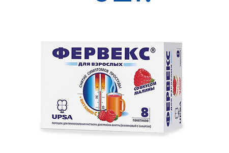 Фервекс порошок для взрослых со вкусом малины с сахаром 8 шт. доставка