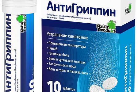 Антигриппин таблетки шипучие, 10 шт. доставка