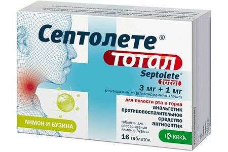 Септолете Тотал 16 шт таблетки для рассасывания лимон и бузина доставка