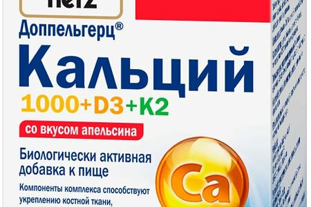 Доппельгерц Актив Кальций 1000 + D3 + K2 со вкусом апельсина 60 таблеток доставка