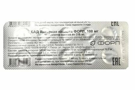 Янтарная кислота ФОРП таблетки 250 мг №10 доставка