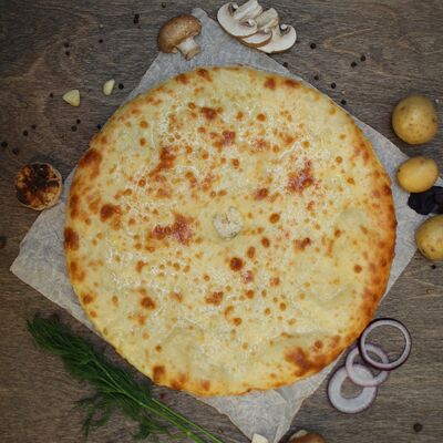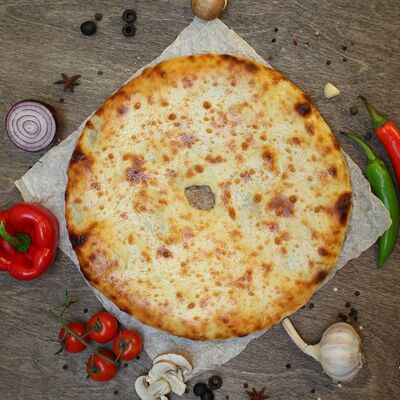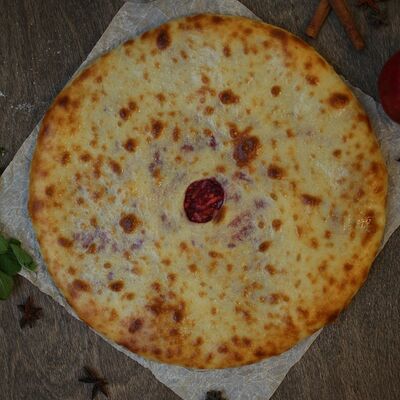 Горячий сытный пирог с тушеной капустой с золотистым луком и сыром. Капуста заправлена душистым черным перцем и другими ароматными специями