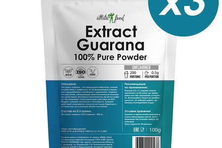 Atletic Food Экстракт Гуараны 100% Pure Extract Guarana Powder (3 шт по 100 г) доставка