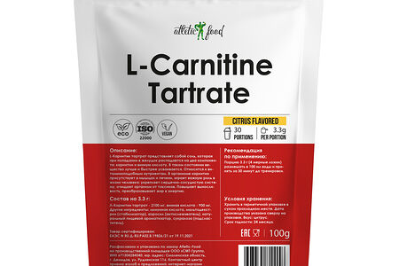 Atletic Food 100% Pure L-Carnitine Tartrate 100 г цитрусовый микс доставка