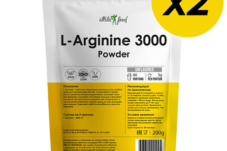Atletic Food Л-Аргинин L-Arginine Powder 3000 - 2 шт по 200 г доставка