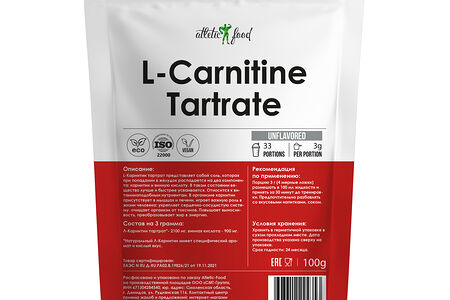 Atletic Food Л-Карнитин тартрат 100% Pure L-Carnitine Tartrate - 100 грамм доставка