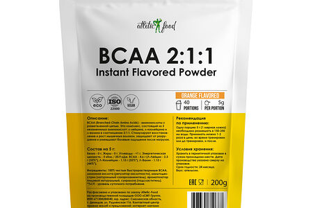 Atletic Food BCAA 2:1:1 Instant Flavored Powder 200 г апельсин доставка