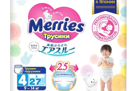 Трусики-подгузники Merries для детей размер L 9-14 кг, 27 шт доставка