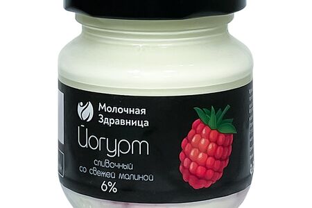 Йогурт сливочный Молочная Здравница со свежей малиной 6% доставка