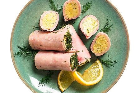 Рулетики из ветчины, фаршированные сыром с чесноком доставка