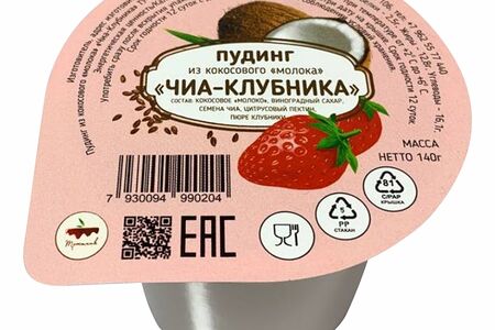Пудинг-Чиа Тростник из кокосового молока клубника 130г, Россия доставка