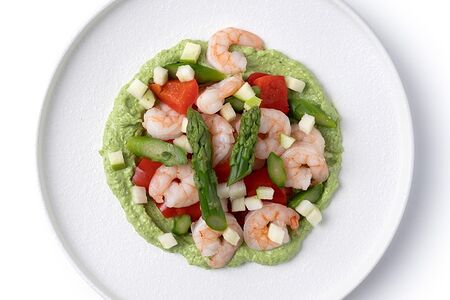 Салат с креветками, спаржей и соусом из руколы, «Уже готово» доставка