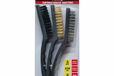 Набор щеток используется для очистки различных поверхностей от старой краски, ржавчины и прочих загрязнений.