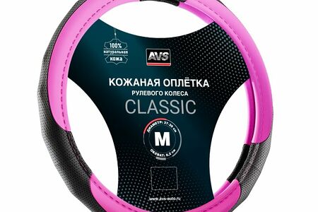 Оплетка на руль (размер M, розовый) (натуральная кожа) AVS GL-910M-PK доставка