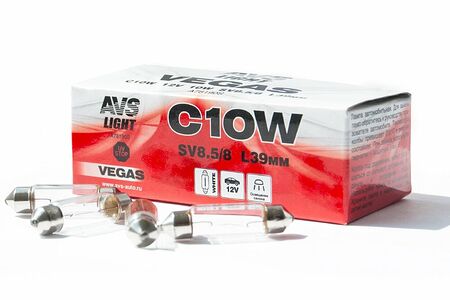 Лампа AVS Vegas 12V. С10W (SV8.5/8) L39мм. BOX (10 шт.) доставка