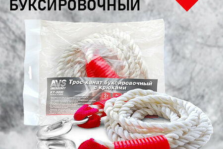 Трос-канат буксировочный с крюками AVS KT-3000 (3т. 4м.) в пакете доставка