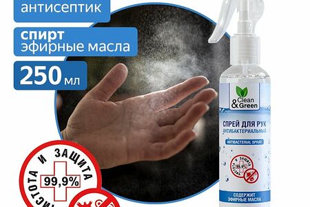 Спрей для рук антибактериальный 250 мл Clean&Green CG8002 доставка