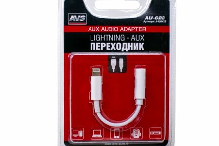 Переходник Lightning — AUX AVS AU-623- представляет собой переходник для устройств с интерфейсом IOS. Он позволяет выводить звук со смартфона или планшета с разъёмом lightning на различные устройства при помощи коннектора 3.5мм. Данный переходник станет отличным решением для прослушивания музыки с портативного устройства на магнитоле автомобиля или домашнем проигрывателе. С одной стороны переходник расположен коннектор lightning, а с другого — входной разъем 3.5мм. Jack. Прочная материал гарантирует долгий срок службы аксессуара.