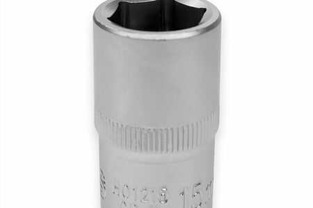 Размер головки: 15 мм Посадочный размер: 1/2” DR Количество граней: 6 Материал: хромованадиевая сталь Твердость: 45-48 HRC Покрытие: сатиновое DIN: 3124