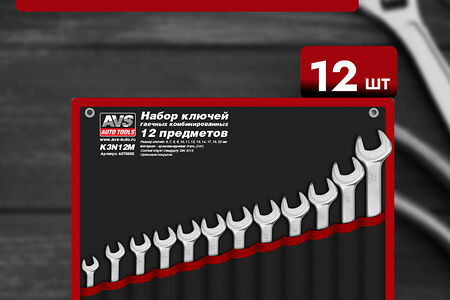 Название товара: Набор комбинированных гаечных ключей в сумке AVS K3N12M Описание товара: Набор из 12 комбинированных ключей AVS в сумке. Размеры ключей варьируются от 6 до 22 мм. Материал - хромованадиевая сталь 31CRV3. Покрытие - сатиновое. Преимущества товара:- Широкий диапазон размеров ключей;- Прочность и надежность;- Удобная сумка для хранения и переноски;- Компактный размер для удобного использования;- Соответствие стандартам DIN-3113 и ГОСТ 16983-80.Область применения: Набор комбинированных ключей подходит для работы с различными крепежными элементами. Он может использоваться как в быту, так и в профессиональной сфере.Набор комбинированных ключей в сумке - это надежный и удобный инструмент для работы с крепежными элементами разного размера и формы. Благодаря широкому диапазону размеров и прочности материала, набор позволяет быстро и эффективно выполнять различные задачи. Удобная сумка позволяет легко хранить и переносить инструменты, что делает их использование еще более комфортным. Набор комбинированных ключей является отличным выбором для тех, кто ценит качество и удобство в работе.Набор гаечных ключей , набор ключей , набор инструментов , набор ключей в сумке , набор ключей в кейсе