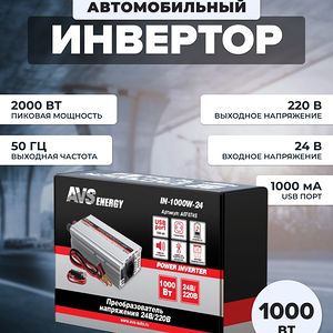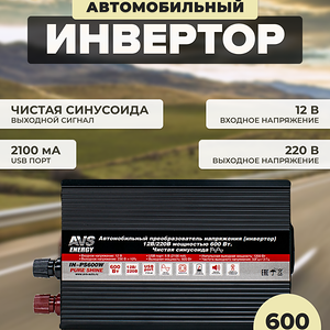 Автомобильный преобразователь напряжения AVS IN-1500W – это незаменимый помощник в поездках и путешествиях. Он позволяет использовать бытовую технику, компьютер, ноутбук и другую оргтехнику в дорожных условиях. С помощью этого инвертора можно подключить любое устройство, которое работает от сети 220 Вольт.Преимущества:- Встроенная схема защиты предохраняющая устройство от преждевременного выхода из строя при низком или высоком входном напряжении, неправильной полярности или коротком замыкании во входных цепях.- Высокая номинальная мощность 1500 Вт и допустимая пиковая мощность 3000 Вт обеспечивают стабильную работу подключенных устройств.- Компактные размеры и легкий вес позволяют легко переносить инвертор в сумке или рюкзаке.- Наличие 1 разъема USB позволяет заряжать мобильные устройства и другие гаджеты.- Активное охлаждение обеспечивает стабильную работу инвертора даже при высоких нагрузках.Характеристики:* Входное напряжение 12 Вольт* Выходное напряжение 220 Вольт* Номинальная мощность 1500 Ватт* Пиковая мощность 3000 Ватт* Выходная частота: 50Гц.* Размеры: 29,8 х 14 х 6 см.* Защита от короткого замыкания.*Защита от перегрева.*Материал: металл, пластикКомплектация:1. Автомобильный инвертор AVS IN-1500W2. Провода для подключения3. Инструкция и гарантийный талон4. УпаковкаАвтомобильный инвертор AVS IN-1500W станет незаменимым помощником в дороге и позволит наслаждаться комфортом и удобством в любых условиях.