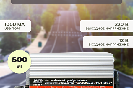 Преобразователь напряжения AVS IN-600W - это устройство, которое позволяет преобразовывать постоянное напряжение 12 вольт в переменное напряжение 220 вольт. Он идеально подходит для использования в автомобилях, где необходимо подключить бытовую технику, компьютер, ноутбук и другую оргтехнику.Преимущества инвертора AVS IN-600W:1. Встроенная схема защиты от короткого замыкания, перегрева и других проблем, которые могут возникнуть при использовании инвертора.2. Высокая номинальная мощность - 600 ватт, что позволяет подключать к нему различные устройства.3. Выходная частота 50 Гц и выходное напряжение 220 В.4. Компактные размеры и легкий вес - всего 0,7 кг.5. Возможность подключения через прикуриватель или крокодилы.Инвертор AVS IN-600W является надежным и удобным устройством, которое позволит вам использовать различные устройства в автомобиле без необходимости подключения к розетке.