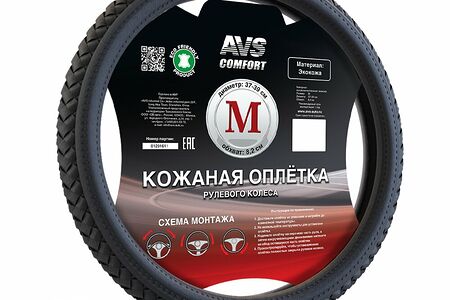 Оплетка на руль (размер M, черный) (экокожа) AVS SL-710M-B доставка