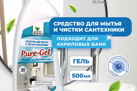 Средство для мытья и чистки сантехники Pure-Gel (кислотное, гель) 500 мл Clean&Green CG8079 доставка