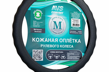 Оплетка на руль (размер M, черный) (экокожа) AVS SLE-296M-B доставка
