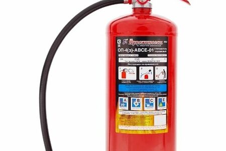 Огнетушитель ОП-4 (ABCE) предназначен для защиты помещений производственного и хозяйственного назначения, применим на автомобильном, железнодорожном, речном транспорте и в бытовых условиях в качестве первичного средства тушения пожаров классов А (твердых горючих веществ), В (жидких горючих веществ), С (газообразных горючих веществ) и электроустановок, находящихся под напряжением до 1000 В.Огнетушитель не предназначен для тушения загораний щелочных и щелочноземельных металлов и материалов, горение которых может происходить без доступа воздуха.Огнетушитель является изделием многоразового пользования, подлежит перезарядке после каждого применения.Габариты (мм): 133x133x430Масса заряженного огнетушителя, кг - 5,6Классы пожара: АВСЕМасса заряда порошка, кг, не менее: 4±0.2Рабочее давление, Мпа: 1.4±0.2Длина струи, м: 3Продолжительность подачи ОТВ, с, не менее: 10Вытесняющий газ: ВоздухПереосвидетельствование не реже: 1 раз в 5 летДиапазон рабочих температур: °С- 50…+50Огнетушащая способность по классу пожаров: - модельный очаг класса А: 2 А - модельный очаг класса В: 55 ВСрок службы огнетушителя, лет: 10