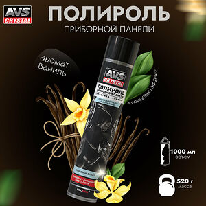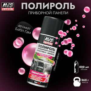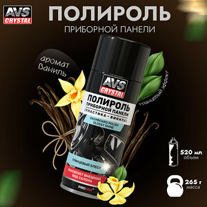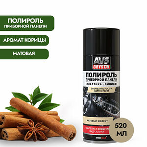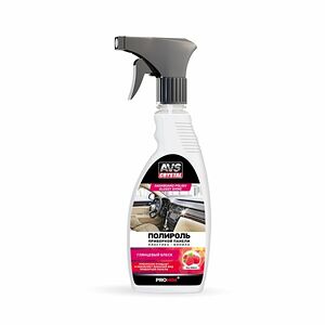 Полироль для приборной панели "Вишня"AVK-865 входящие в состав специальные компоненты очищают обрабатываемую поверхность, восстанавливают первоначальный цвет и придают матовый эффект. Силиконовые полимеры защищают поверхность от старения и растрескивания. Образуемая защитная пленка обладает антистатическим эффектом, препятствует оседанию пыли. Защищает от ультрафиолета. Длительный срок действия. После нанесения средство не оставляет разводов и жирных следов. Обладает приятным ароматом "ваниль", нейтрализуя неприятные запахи, в том числе запах табака.Способ применения: Использовать при температуре не ниже +10°С. Перед использованием энергично встряхнуть баллон. Нанести полироль тонким слоем на обрабатываемую поверхность и не дожидаясь высыхания, отполировать мягкой тканью. Внимание! Не использовать под воздействием прямых солнечных лучей и на горячей поверхности. Не использовать на руле, рычаге ручного тормоза, на педалях - они могут стать скользкими, что может привести к потере управляемости автомобилем.Условия транспортировки и хранения: Рекомендуется хранить в хорошо проветриваемом сухом помещении на расстоянии не менее 1 м от нагревательных приборов, при температуре от +5°С до +25°С. Не допускать сдавливания баллона, следить за сохранением целостности упаковки. Беречь от воздействия солнечных лучей и атмосферных осадков.Меры предосторожности: ОГНЕОПАСНО! Содержимое под давлением! Предохранять от воздействия прямых солнечных лучей, воздействия статического электричества и нагревания свыше +50°С. Не распылять вблизи открытого огня и раскаленных предметов! Не курить во время пользования! Не разбирать и не давать детям! Не вдыхать испарения, избегать попадания внутрь, на открытые участки кожи и в глаза. При попадании на кожу или в глаза, обильно промыть чистой водой. При необходимости обратиться за медицинской помощью. Использовать только по назначению. Использованный баллон не сжигать, утилизировать как бытовой отход.ТУ 20.41.32-002-32415961-2018.Тип: аэрозольОбъем: 1000 млАромат: вишня