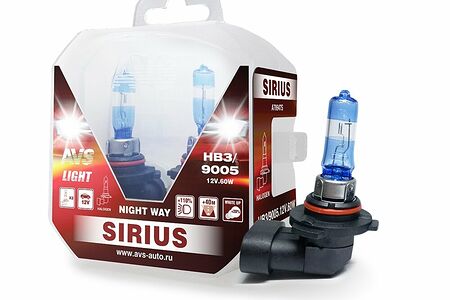 Лампа галогенная AVS SIRIUS NIGHT WAY HB3/9005.12V.65W Plastic box -2 шт. доставка