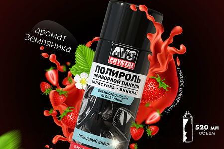 Входящие в состав специальные компоненты очищают обрабатываемую поверхность и восстанавливают первоначальный цвет. Силиконовые полимеры придают поверхности глянцевый блеск, защищают от старения и растрескивания. Образуемая защитная пленка обладает антистатическим эффектом, препятствует оседанию пыли. Защищает от ультрафиолета. Длительный срок действия. После нанесения средство не оставляет разводов и жирных следов. Обладает приятным ароматом "земляника", нейтрализуя неприятные запахи, в том числе запах табака.Способ применения: Использовать при температуре не ниже +10°С. Перед использованием энергично встряхнуть баллон. Нанести полироль тонким слоем на обрабатываемую поверхность и не дожидаясь высыхания, отполировать мягкой тканью. Внимание! Не использовать под воздействием прямых солнечных лучей и на горячей поверхности. Не использовать на руле, рычаге ручного тормоза, на педалях - они могут стать скользкими, что может привести к потере управляемости автомобилем.Условия транспортировки и хранения: Рекомендуется хранить в хорошо проветриваемом сухом помещении на расстоянии не менее 1 м от нагревательных приборов, при температуре от +5°С до +25°С. Не допускать сдавливания баллона, следить за сохранением целостности упаковки. Беречь от воздействия солнечных лучей и атмосферных осадков.Меры предосторожности: ОГНЕОПАСНО! Содержимое под давлением! Предохранять от воздействия прямых солнечных лучей, воздействия статического электричества и нагревания свыше +50°С. Не распылять вблизи открытого огня и раскаленных предметов! Не курить во время пользования! Не разбирать и не давать детям! Не вдыхать испарения, избегать попадания внутрь, на открытые участки кожи и в глаза. При попадании на кожу или в глаза, обильно промыть чистой водой. При необходимости обратиться за медицинской помощью. Использовать только по назначению. Использованный баллон не сжигать, утилизировать как бытовой отход.Тип: аэрозольОбъем: 520 млАромат: земляника