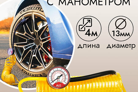 Универсальный шланг-удлинитель с манометром, для автомобильных компрессоров AVS HS-01, A78642S доставка