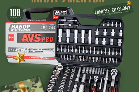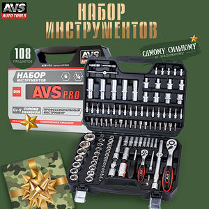 Универсальный набор инструментов для автомобиля AVS ATS-108, 108 предметов для ремонта, для дома (Профессиональный инструмент), A07825S доставка