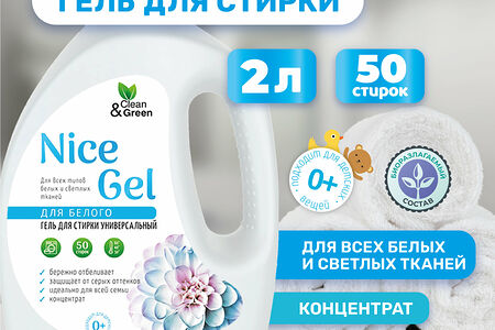 Гель для стирки "Nice Gel" для белого белья (концентрат) 2 л. (ПЭНД) Clean&Green CG8295 доставка
